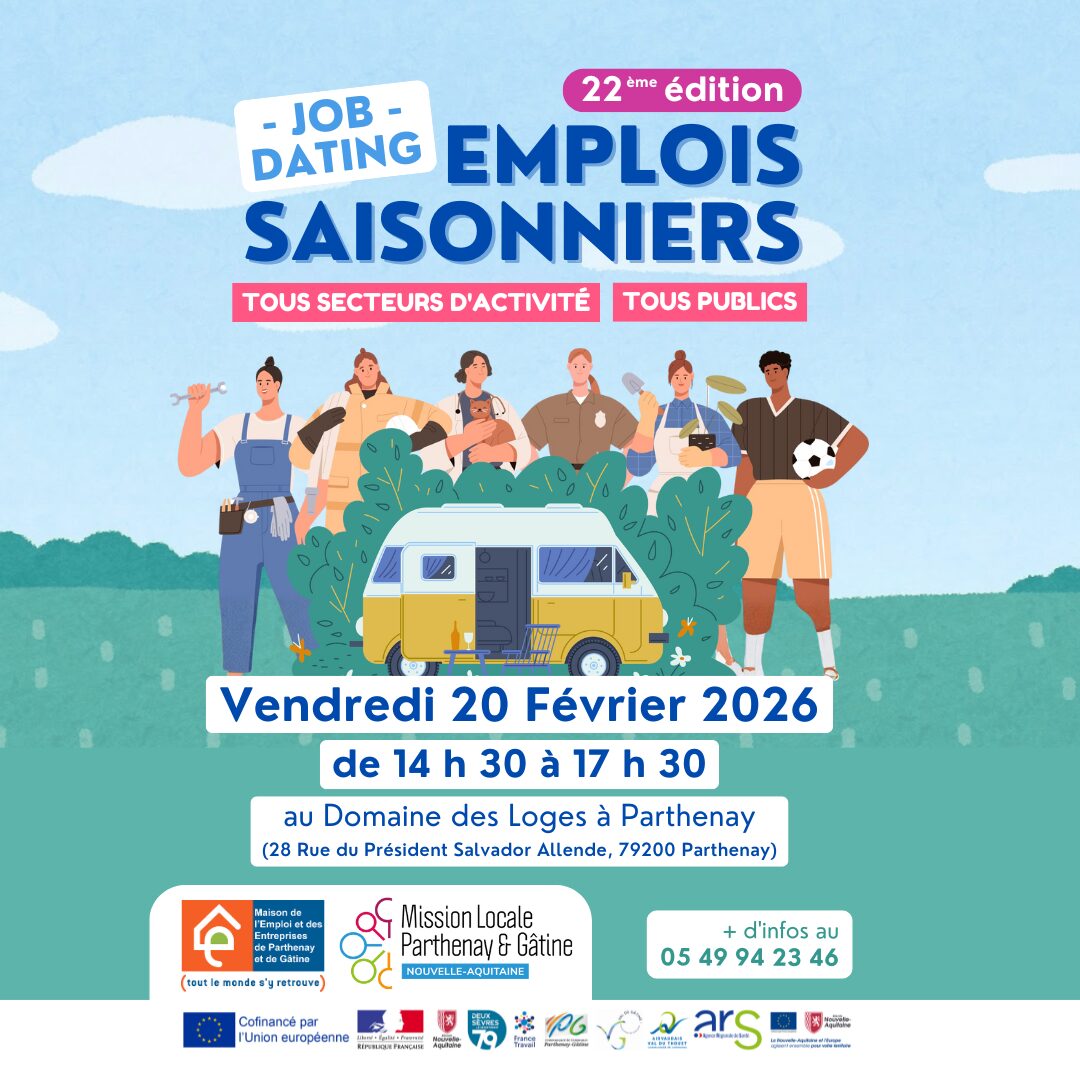 La Maison de l’Emploi et des Entreprises de Parthenay et de Gâtine, vous invite à la 21ème édition de son Job Dating – Emplois Saisonniers.